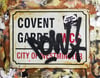 Plaque de fer type Covent Garden (Londres) recouvert Shoot The Bank x POW!