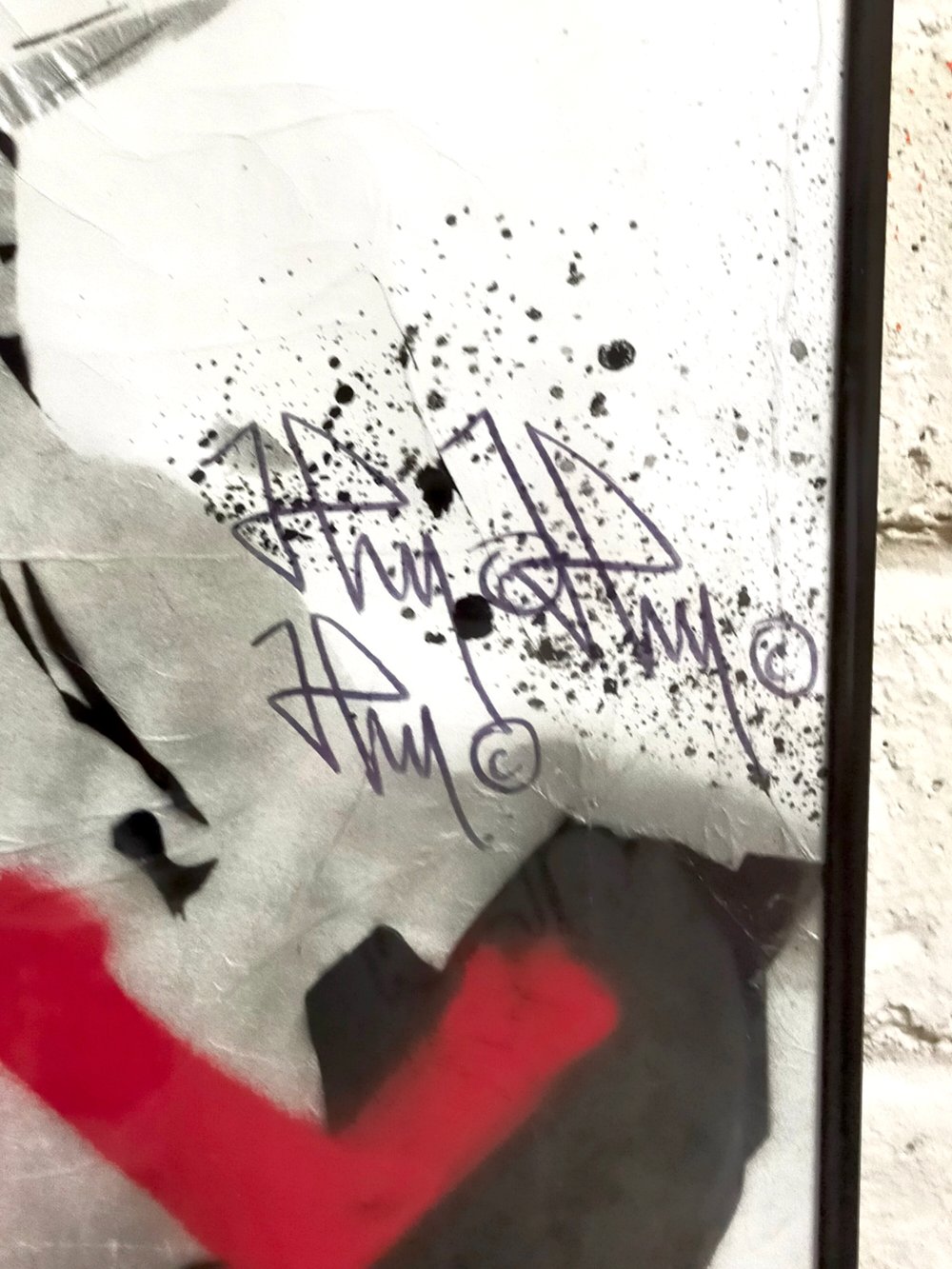 Réalisation sur papier de soie, comme ceux collés dans les rues d Paris, Londres, Berlin, Majorque et Barcelone puis marouflé sur papier d'art de format 65x50 cm.